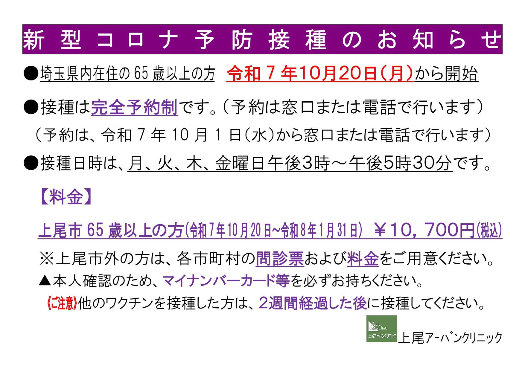 2025年度 高齢者コロナワクチン予防接種のお知らせ